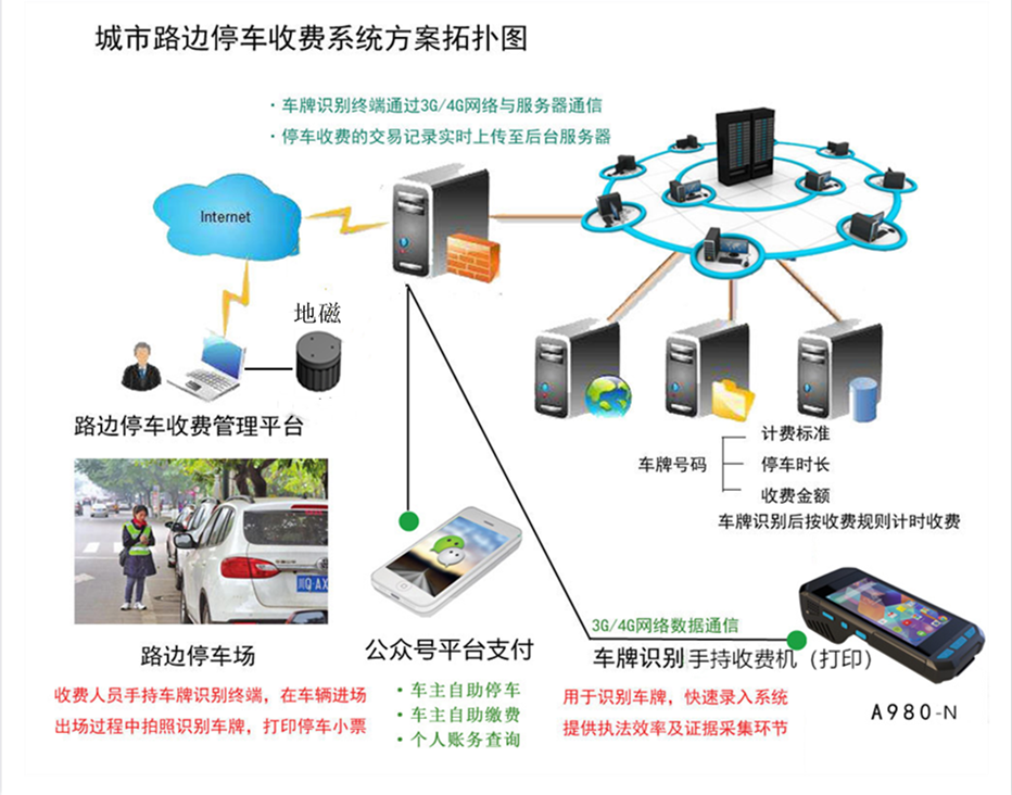 該系統(tǒng)平臺預(yù)留拓展接口,可以實現(xiàn)與城市監(jiān)管平臺及城市交通車輛管理部門監(jiān)管信息對接,是實現(xiàn)城市管理與交通車輛管理現(xiàn)代化的重要環(huán)節(jié)。通過運(yùn)營商網(wǎng)絡(luò)或無線寬帶網(wǎng)絡(luò)技術(shù)的應(yīng)用,實現(xiàn)信息源的采集,保證對任一占道停車場實行全區(qū)域、全時段狀況的實時監(jiān)控與收費(fèi)管理。